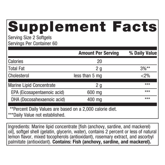 Omegagenics EPA-DHA 500 - Supports Cardiovascular Health* - Fish Oil EPA DHA - Purity & Quality Tested - Non-Gmo & Gluten-Free - 120 Count