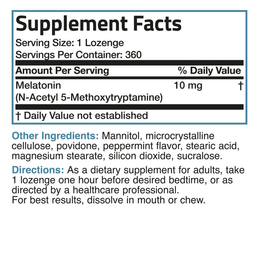 Melatonin 10Mg Fast Dissolve Tablets - Sleep Aid - Fall Asleep Faster, Stay Asleep Longer, 360 Peppermint Flavored Tablets